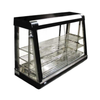 Boost impulse sales and showcase your delicious hot food items with the OMCAN 21571 (DW-CN-1194) 47-inch countertop display case. This merchandiser is expertly designed to keep food hot, fresh, and visually appealing, making it a perfect addition to concession stands, convenience stores, cafeterias, and self-serve stations. Its spacious interior, illuminated by both interior and exterior lights, ensures your products are always in the spotlight. The unit features glass on all sides, providing customers with a clear view from any angle, while the front and back sliding doors allow for easy access for both staff and customers. An integrated thermostat monitor maintains consistent temperatures, and a water tray is included to add humidity, preventing food from drying out. Built for commercial use, this durable and attractive display case is the ideal solution for presenting your hot foods.