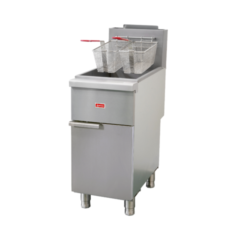 - User-Friendly Design: Comes standard with twin fry baskets with plastic-coated handles for safe handling and a 1-1/4" full port drain valve for fast and complete oil drainage.