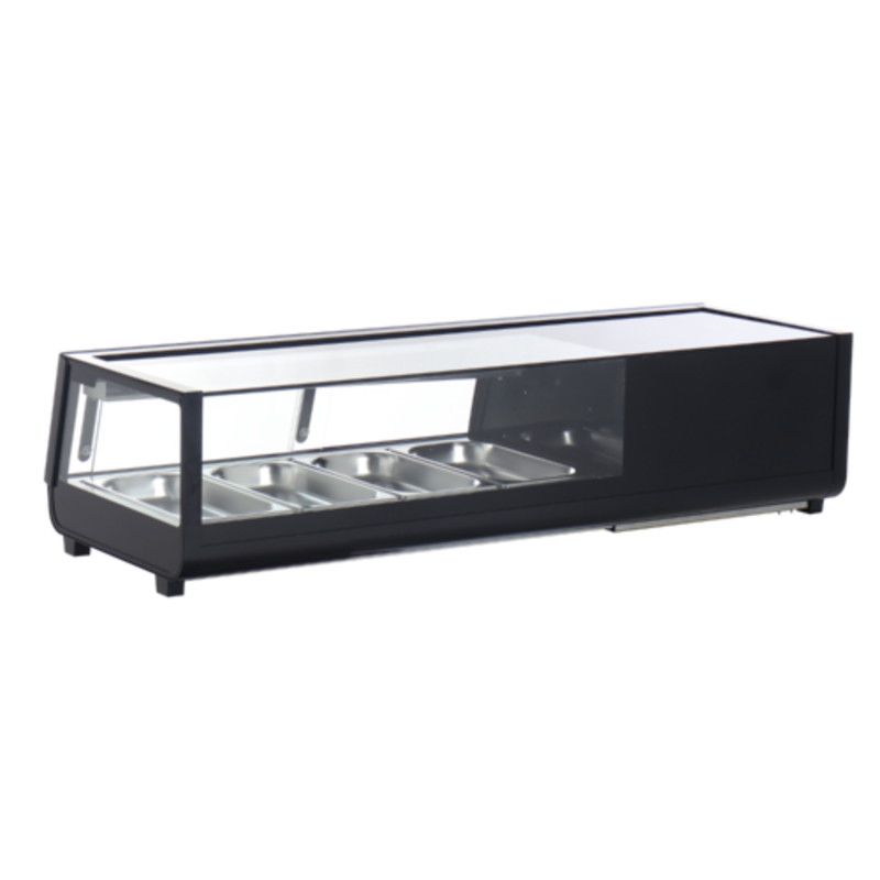 • Spacious Capacity: Comes with space for 4 (1/3 size) pans, providing ample room to display a wide variety of sushi.
