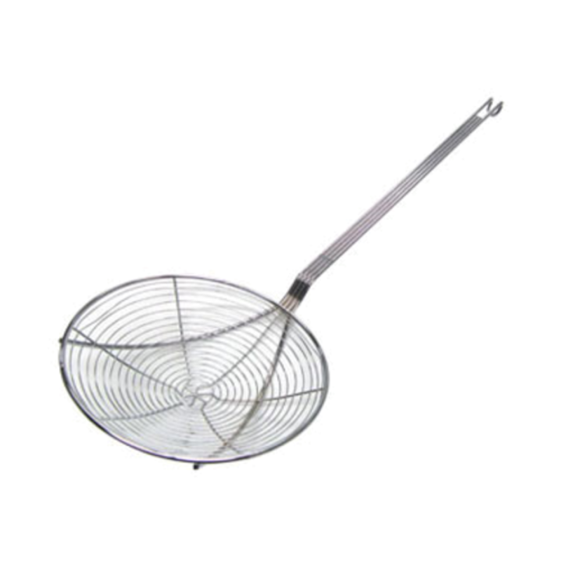 Enhance your kitchen's efficiency with the SWS-9 Spiral Skimmer, an essential tool for any professional or home chef. This heavy-duty skimmer is designed for durability and longevity, crafted with a bright nickel-plated finish that stands up to the rigors of a busy kitchen environment. Its 9-inch diameter spiral mesh is perfect for effortlessly removing foam, grease, and food particles from stocks, broths, and deep fryers, ensuring clear and clean results every time. The robust construction provides a comfortable and secure grip, making it a reliable choice for various culinary tasks. Upgrade your kitchen utensils with this professional-grade spiral skimmer, built for performance and ease of use.