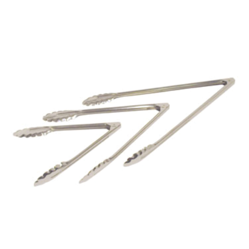 Introducing the LUT-10 Light-Weight Utility Tongs, an essential tool for any commercial kitchen, buffet, or catering operation. Crafted from durable stainless steel, these tongs are designed for reliability and longevity. At a versatile 9.5-inch length, they provide excellent control for a variety of tasks, from flipping ingredients on the grill to serving salads and pastries. The lightweight design ensures comfort and reduces fatigue during prolonged use, making them a practical choice for busy food service professionals. Their one-piece construction makes them easy to clean and sanitize, promoting a safe and hygienic food handling environment. Upgrade your kitchen utensils with these dependable and efficient utility tongs.