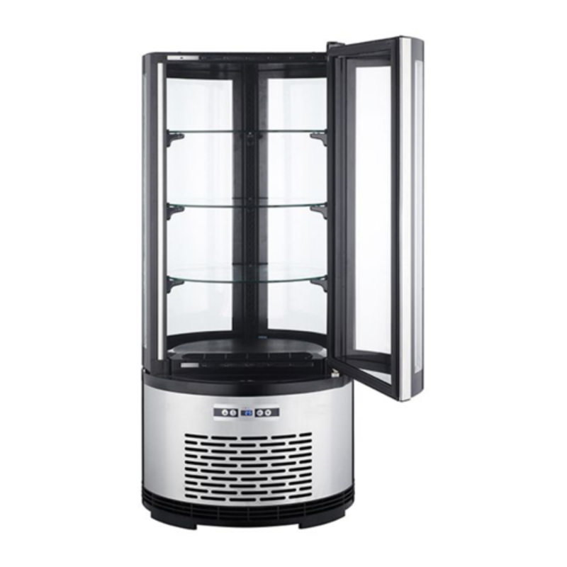 Showcase your delicious cakes, cupcakes, and pastries with the elegant Black Diamond BDRCK-100/CT Countertop Refrigerated Cake Display. Expertly crafted for bakeries, cafes, and restaurants, this unit combines a durable stainless steel body with a clear, single PVC glass door to provide a stunning 360-degree view of your products. Its compact countertop design makes it a perfect fit for any establishment, maximizing visibility without sacrificing space.