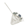 Achieve perfectly smooth and refined soups, stocks, and sauces with the BS-825 Bouillon Strainer, also known as a Chinois. An essential tool for any professional chef or discerning home cook, this strainer is designed for precision and durability. Crafted from high-quality stainless steel, it is built to withstand the rigors of a busy commercial kitchen while resisting corrosion and maintaining its integrity over time. The cone-shaped design and ultra-fine mesh are perfect for filtering out even the smallest impurities, ensuring a silky, clear final product every time. Its generous 8-inch diameter and 6.75-inch depth can handle significant volumes, making your straining tasks more efficient. The integrated hook provides stability by allowing you to rest the strainer securely on pots and bowls, freeing up your hands. A long, 9-inch handle offers a comfortable and safe grip, keeping you away from hot liquids. Ideal for creating consommés, purées, custards, and sauces, this strainer is a cornerstone of classic culinary technique.